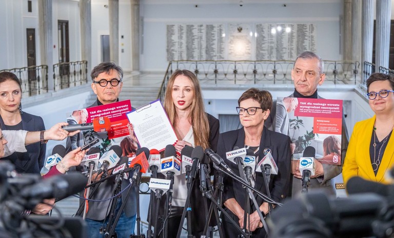 - Cieszę się, że projekt 20-procentowej podwyżki to wspólna inicjatywa ZNP i demokratycznej opozycji, który dzisiaj składamy do laski marszałkowskiej i domagamy się od pani marszał...